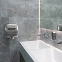 Constructed with premium stainless steel, this commercial hand dryer radiates strength and durability, standing up to the hustle and bustle of high-traffic bathrooms. The beautiful silver chrome finish injects a spark of style, while easing cleaning and maintaining a high level of hygiene - ideal for cleanliness-focused facilities.